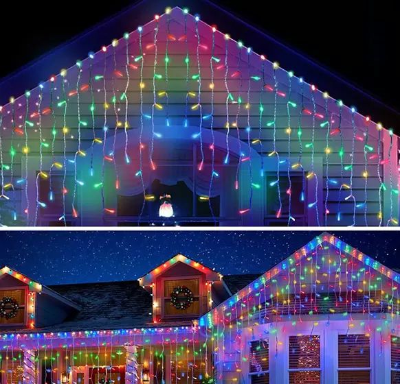Luz de Natal Cascata 300 Lâmpadas LED Colorido Fio Branco USO INTERNO E EXTERNO 6m BIVOLT IP44