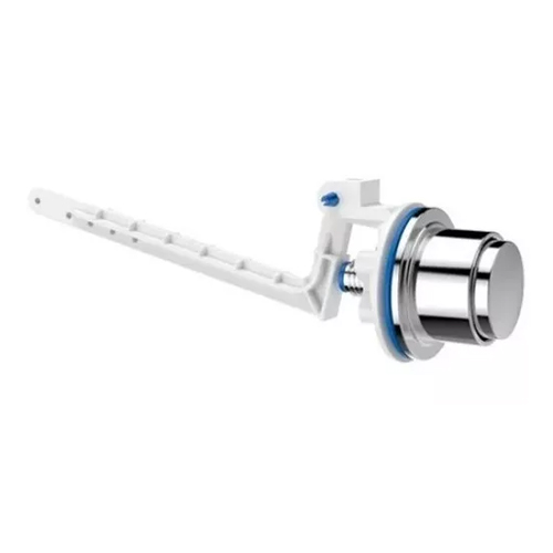 Reparo Caixa Descarga Acoplada Botão Acionamento Lateral Redondo Cromado, fabricado em plástico. Tem descarga simples.